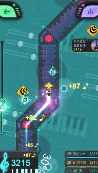 1、快速跟随音乐,遇到红点,点击屏幕,旋转,跳跃,音乐不会停止。