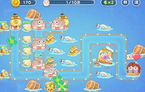 6、不断增加鱼雷炮,在出口的位置,潜水兔出现的时候就打掉。
