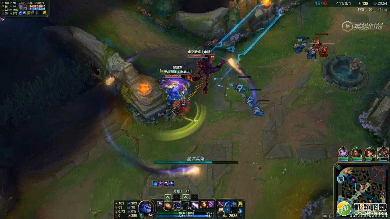 4、在索尔头部的位置有一个蓝色的星空状球体。那个是E技能释放的终点。下面也有一张图: