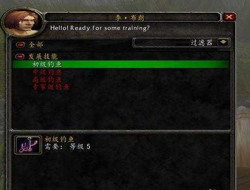 4、这个钓鱼技能也没有速成班的,先从初级钓鱼学起吧。