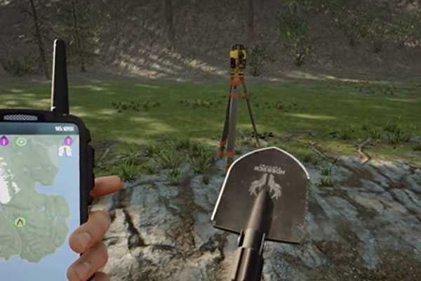 然后我们找到这里有仪器的地方,就是有勘测仪等等的地方,然后在这里可以看到一个挖掘点,我们挖掘此处;