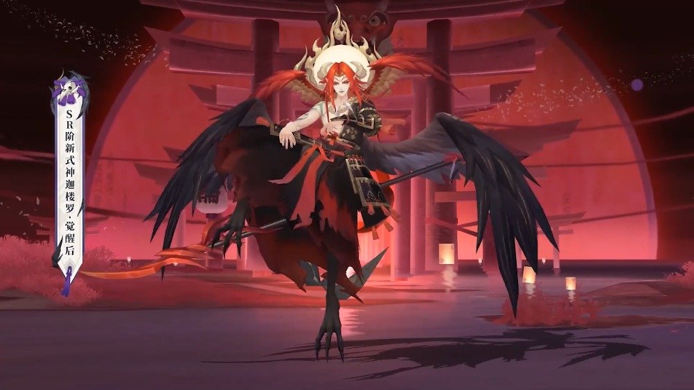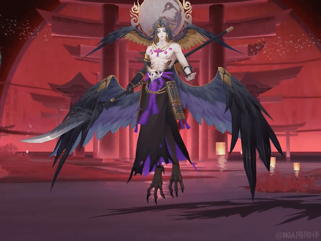 - 一技能化生戟,普攻技能,系数是125%(满级),迦楼罗普攻过后,会消耗掉目标身上的一层「惜羽」。虽然一技能本身没有特殊效果,但是结合「惜羽」的功能,使得迦楼罗的普攻变成了他对抗拉条式神的重要法宝。
