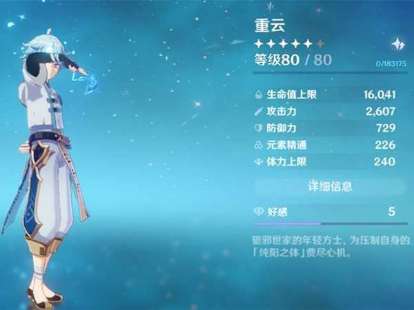 重云《原神》及其衍生作品中的角色,以璃月为中心,四处进行驱邪活动的云游方士,他自幼便有过人的绝技,然而,这种绝技并非学自师门,而是与生俱来的异能—纯阳之体,是一名近战双手剑专门使用冰属性的角色,重云挥动巨剑猛击地面,在前方圆形范围内引发冰爆,并对敌人造成冰元素伤害,短暂延迟后,冰爆引发的寒气汇聚成重华叠霜领域,其中的单手剑、大剑、长柄武器角色获得冰元素附魔,下面给大家整理了他的培养攻略:
