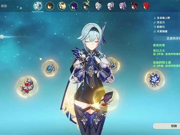 没有合适苍白4件套的情况下,双骑士双苍白可以让优菈直接获得50%物理伤害加成。