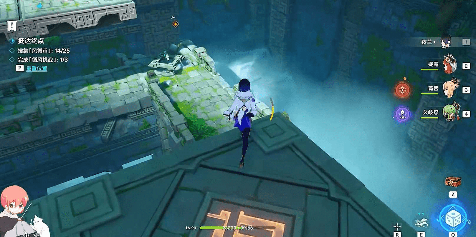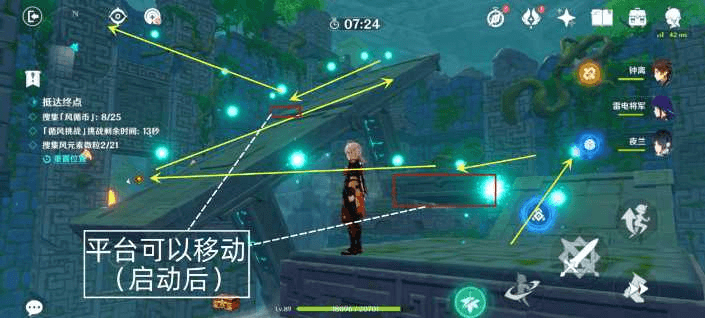 37、飞起来吃剩下的风元素微粒,完成挑战,并来到上方平台。