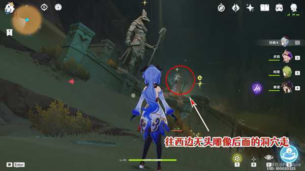 1、接着回到最初的传说锚点,往西北方向走,向右边的洞穴走进去。
