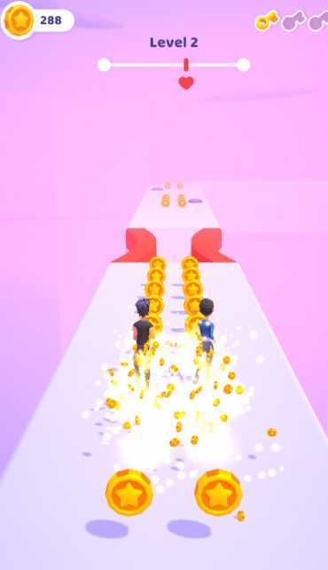 疯狂双人行是一款两个人才可以玩的跑酷游戏,两个人需要同时操控人物,任何一方失败都会导致游戏失败,所以非常考验双方的默契,可以叫上喜欢的小姐姐一起玩哦。