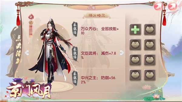 相较于男性比较喜爱的热血战斗,大多数的女性玩家却不太中意PK型游戏,更愿意尝试节奏较缓的回合制战斗,同时,众多女性的感性特征使得其更热衷于参与收集等活动,不断的累积的过程会使其获得更多的成就感。在小说《京门风月》中,南秦京城危机四伏,想要保家族荣耀,更需神秘支援助阵。游戏中看见根骨不错的人才,可以收入麾下,秘密培养,定制属于自己的后援队伍,不论是文是武,都可以护你在游戏中一路前行。寻找到有缘分的暗卫,专门为其定制发展路线,悉心培养,必有收获。