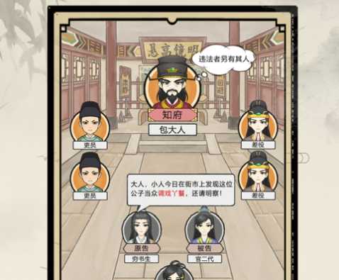 1、- 公堂判案 —— 各种千奇百怪的随机案件,作为知府你是否真的能秉公处理,不同的办案选择将会影响游戏的走向。