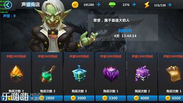 声望商店:达到对应声望,消费金币购买材料资源和装备;