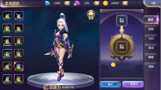 通过宝石碎片(攻击宝石碎片、生命宝石碎片等)提升装备属性,二级宝石直接升一级