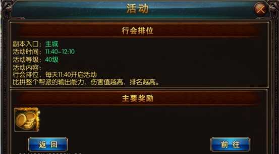 当活动开启时,会弹出一个二次弹窗提示玩家进入,玩家也可在活动-定时-行会排位进入。