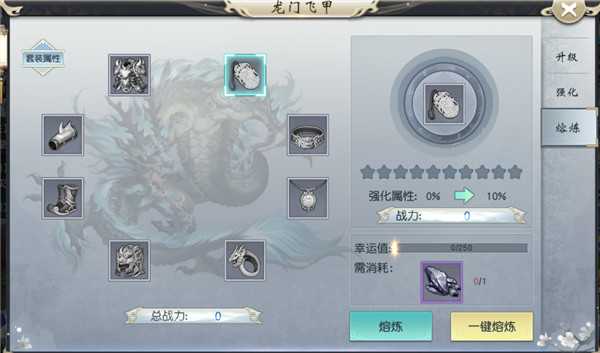 龙门飞甲含八个部位,消耗对应的龙门飞甲道具激活/升级