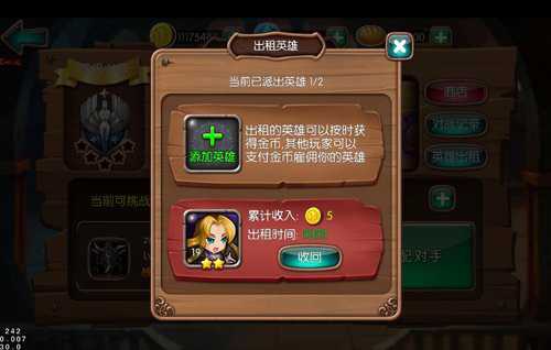 2、玩家可以将自己的英雄出租,帮助小伙伴们战胜其他区的玩家,也可以雇佣强力英雄力克劲敌