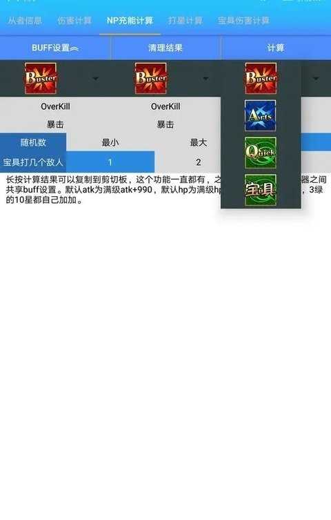 宝具计算器与伤害计算器、np计算器在点了某个从者后就能看到