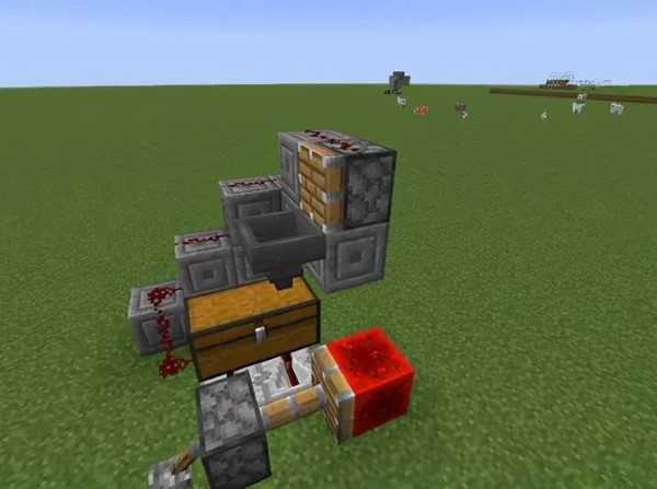 并在尾端放置红石中继器,普通方块,以及我的世界建什么好玩的红石机器发射器,如下图: