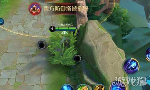 这个位置是敌方中路一塔被摧毁后的草丛位置。