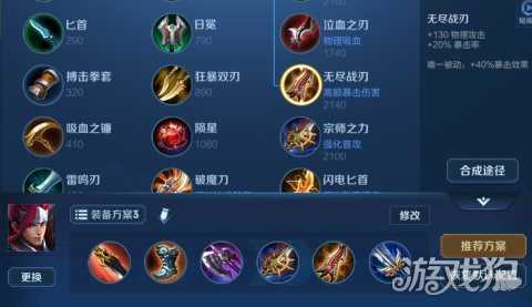 这套装备伤害很高,前期可先出个小打野刀,等暗影战斧的陨星先做出来,在来补大打野刀。暗影战斧出的时候也要注意先合成陨星,这样有利于加物理缩减和物理穿透。宗师之力是加普攻伤害的,对于韩信很合适,现在韩信一般都出纯输出装,如果处于逆风,把宗师之力换成冰痕之握也是可选的,无尽破军都是加伤害的,秒脆皮很合适。