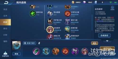 学识宝石+抵抗之靴+红莲斗篷+不死鸟之眼+霸者重装+反伤刺甲