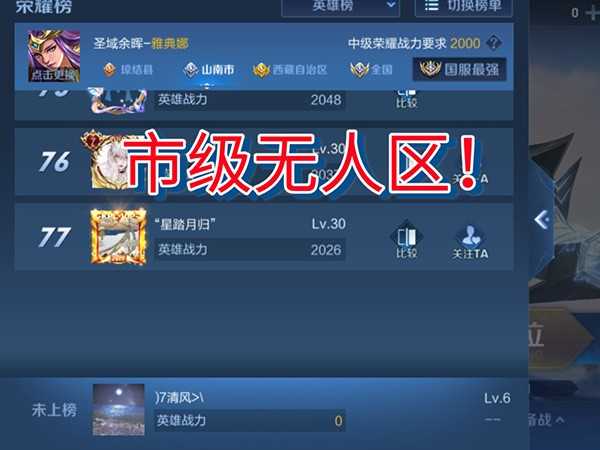2023年3月发现王者荣耀无人区人数最少得地区是黑龙江省伊春市五营区,全区只有752个人,在该区战力只要达到1000战力就可以拿到超多的牌子,想要换战区朋友赶紧冲啊。下面是为大家整理的王者无人区的一些地区: