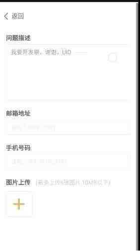 3、填写问题描述【我要开发票】和uid、邮箱地址、手机号码、图片上传的是自己的支付宝交易账单。