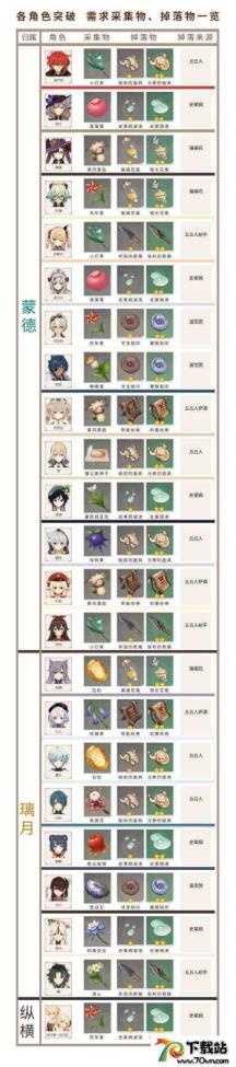 以上就是原神角色突破材料一图流,更多原神游戏相关精彩的内容,敬请关注70下载站。