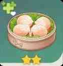 描述:璃月的传统点心之一。 馅料选取整颗鲜虾仁,盈亮的粉色在半透明的薄皮下隐约可见。轻嚼下去更是弹牙可口。 |